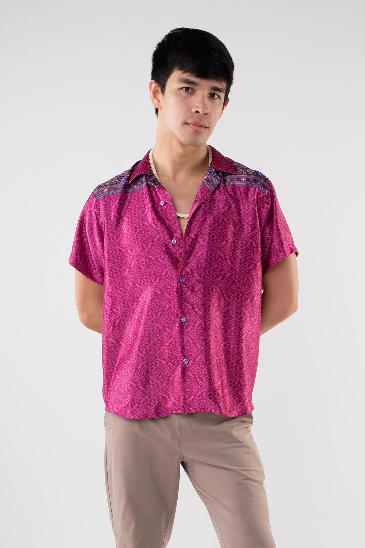 The Rafiki Cabana Shirt is built to last. It’s made with a silk-polyester blend which, compared to pure silk, is easier to care for and wear because it can be washed at home and is wrinkle resistant.