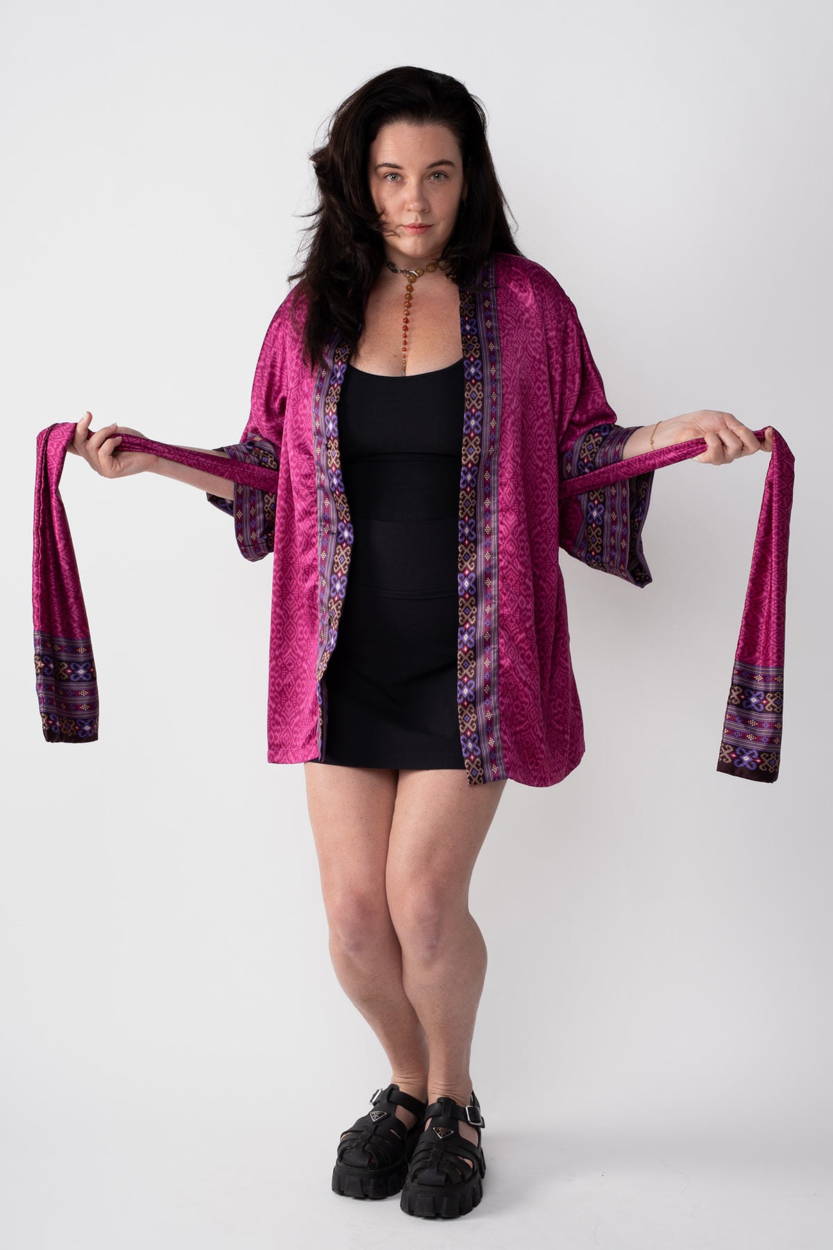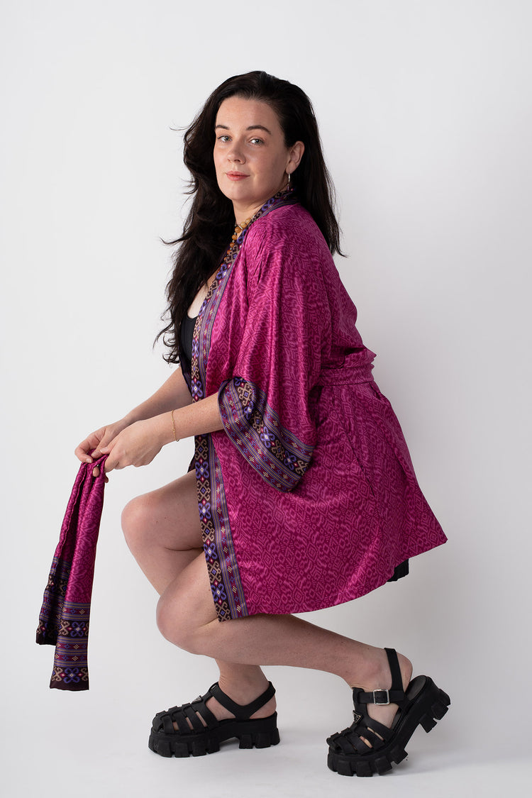 Our Short Kimono Robe is mid-length and a perfect choice to take you from beach to brunch. It’s the same silky, wrinkle-resistant kimono-kaftan robe you love, but in a more versatile fun-sized length! It can be worn open, with the obi belt for a traditional look, or snapped up as a kaftan. It’s an all day, everyday comfort you’ll never want to take off.