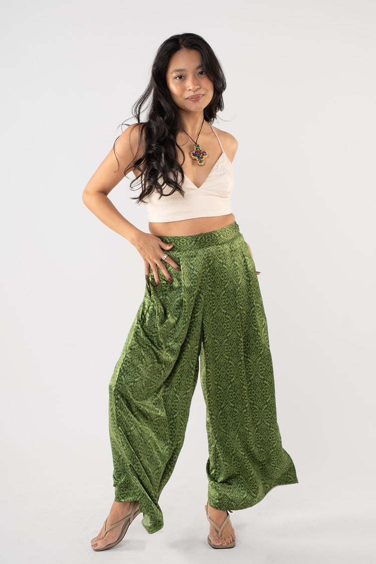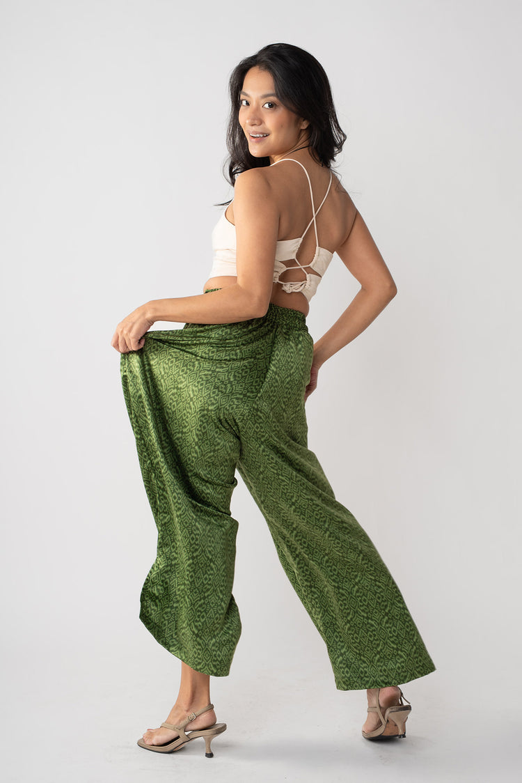 Rafiki Party Pants made for fun, not hassle. Each pair is made with a silk-polyester blend, making them easy to wash by hand and are wrinkle resistant so they travel well.