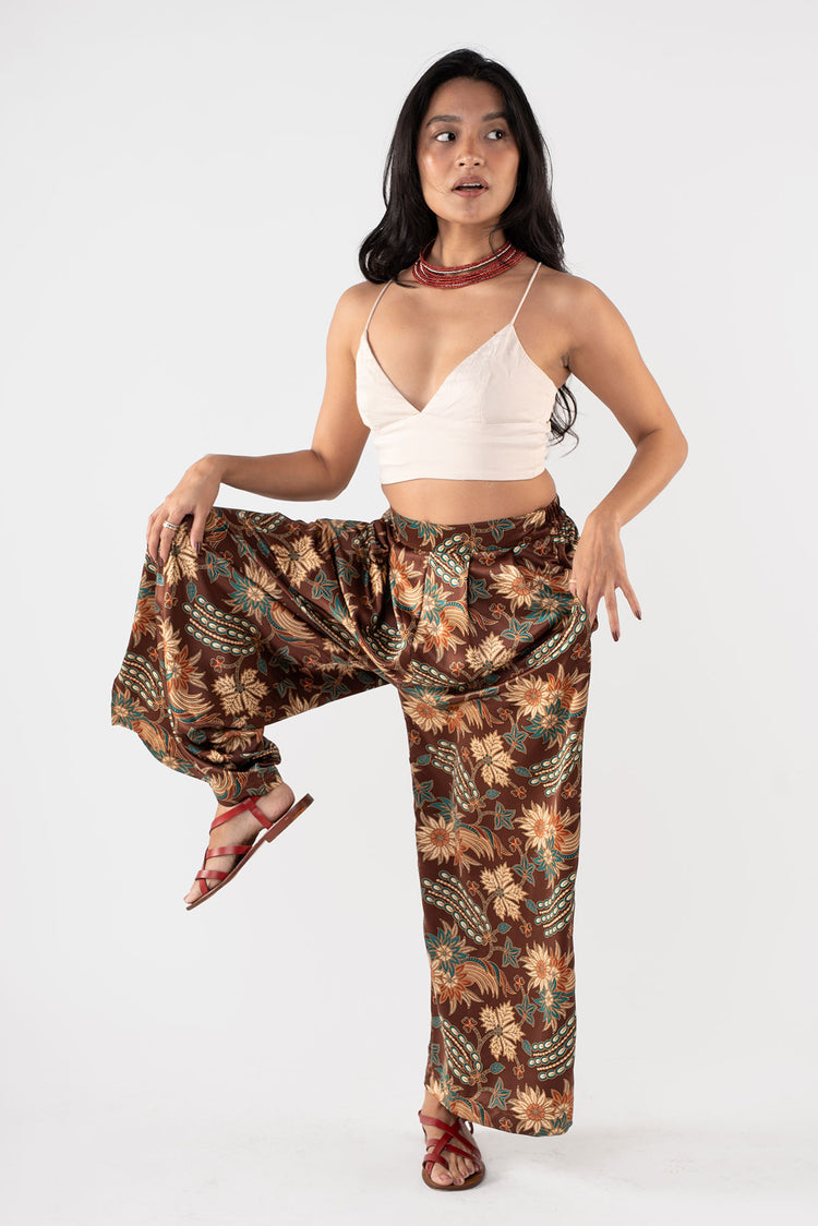 Rafiki Party Pants made for fun, not hassle. Each pair is made with a silk-polyester blend, making them easy to wash by hand and are wrinkle resistant so they travel well.