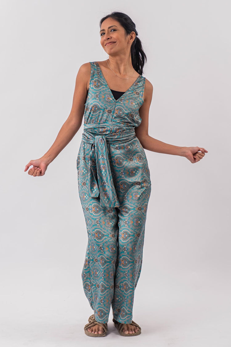 This jumpsie is built to last. It’s made with a silk-polyester blend which, compared to pure silk, is easy care/easy wear. To maintain its softness, hand wash your robe gently using mild soap and hang it up to dry. You can also throw it inside a mesh laundry bag before putting it in the washing machine set to gentle/cool or send it to the dry-cleaners. Wash with similar colors. Lightly iron or steam when needed to get it looking like new again.