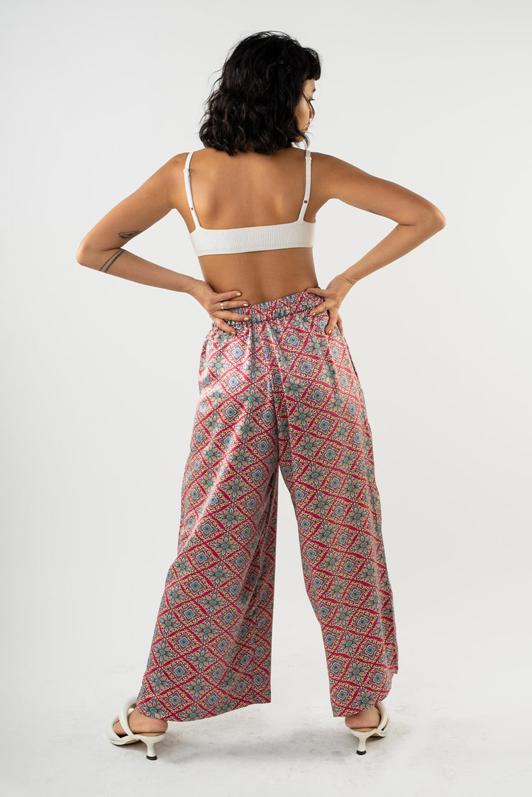 Rafiki Party Pants made for fun, not hassle. Each pair is made with a silk-polyester blend, making them easy to wash by hand and are wrinkle resistant so they travel well.