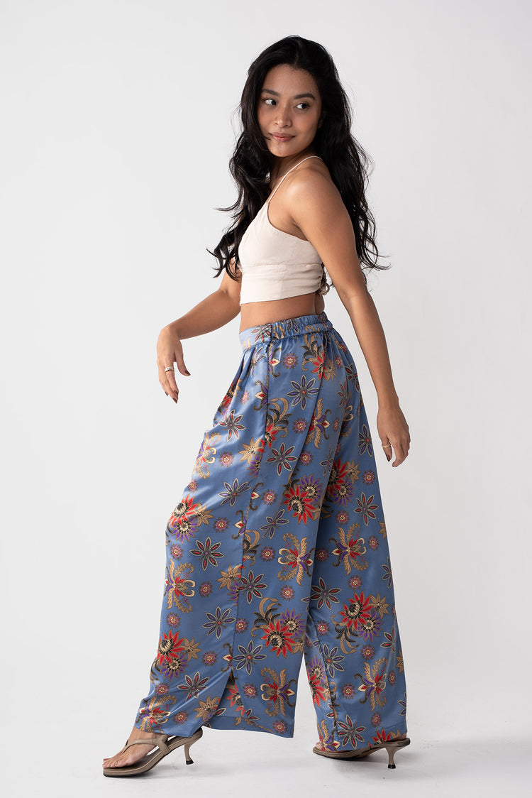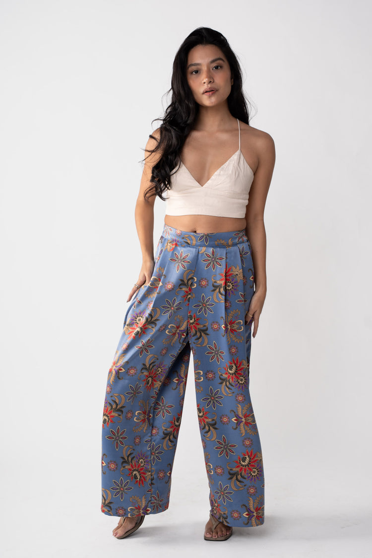 Rafiki Party Pants are flowy bottoms that add fun and flare to any ensemble. These wide legged palazzo pants had a waistband that is flat in front and garterized in back. Party pants are your perfect flexible and versatile pants for every occasion, be it a beach trip, a wedding, and of course, a dance party.