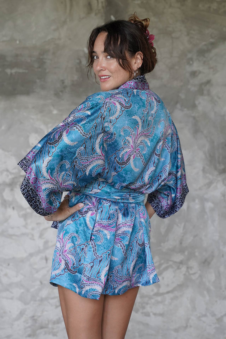 Our Short Kimono Robe is mid-length and a perfect choice to take you from beach to brunch. It’s the same silky, wrinkle-resistant kimono-kaftan robe you love, but in a more versatile fun-sized length! It can be worn open, with the obi belt for a traditional look, or snapped up as a kaftan. It’s an all day, everyday comfort you’ll never want to take off.