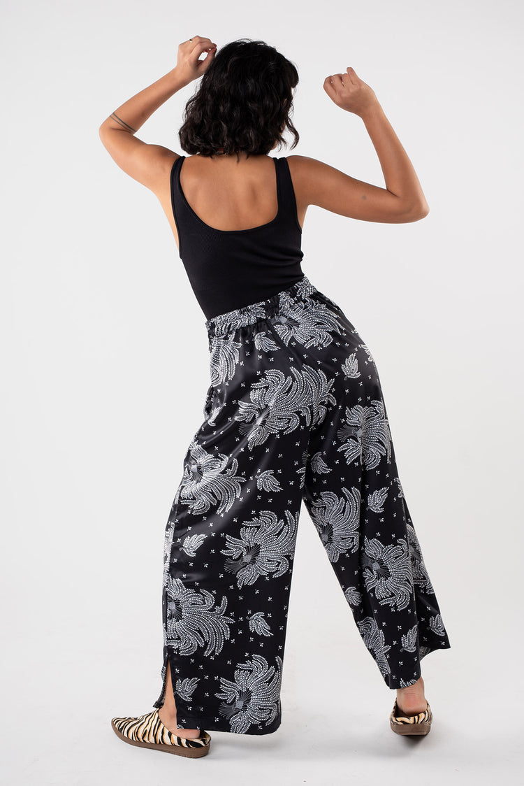 Rafiki Party Pants made for fun, not hassle. Each pair is made with a silk-polyester blend, making them easy to wash by hand and are wrinkle resistant so they travel well.