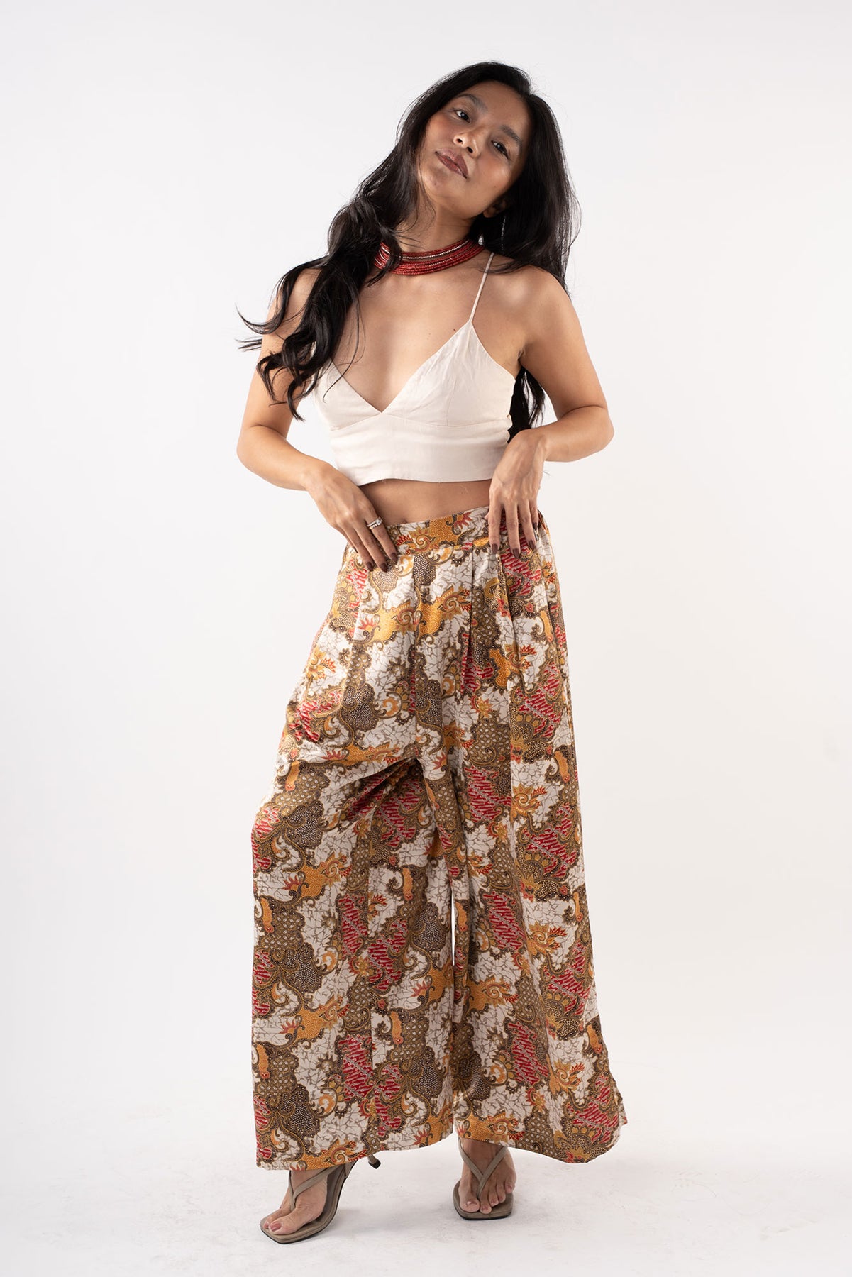 Rafiki Party Pants made for fun, not hassle. Each pair is made with a silk-polyester blend, making them easy to wash by hand and are wrinkle resistant so they travel well.
