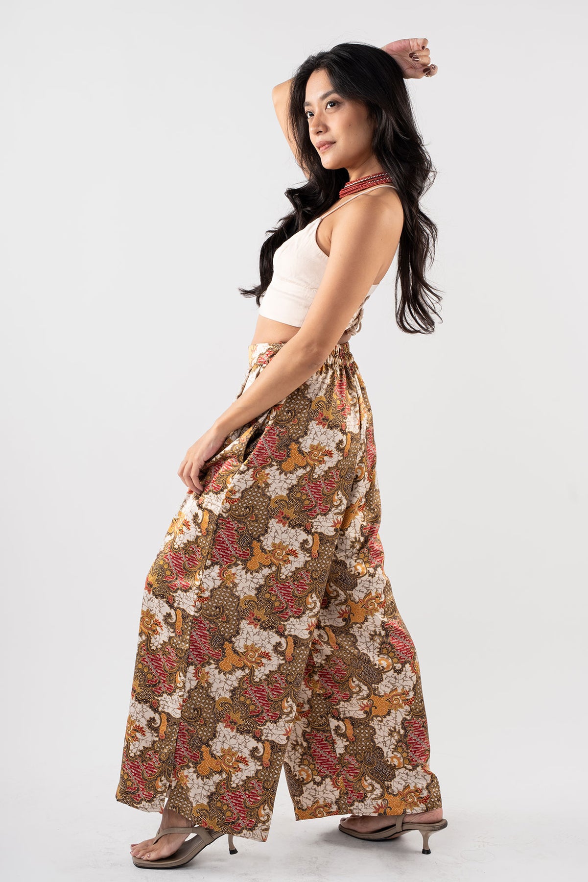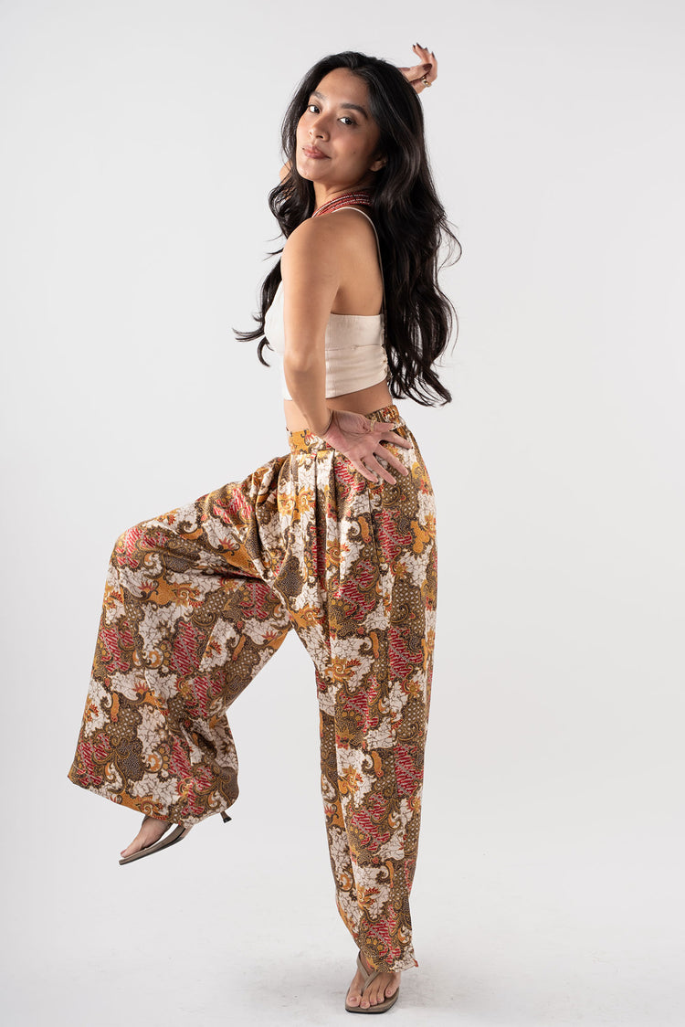 Rafiki Party Pants are flowy bottoms that add fun and flare to any ensemble. These wide legged palazzo pants had a waistband that is flat in front and garterized in back. Party pants are your perfect flexible and versatile pants for every occasion, be it a beach trip, a wedding, and of course, a dance party.