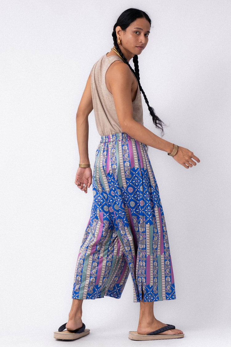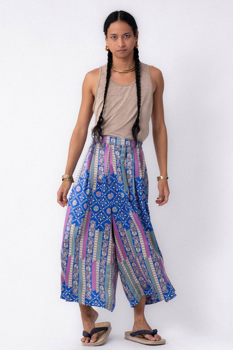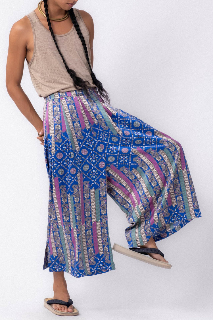 Rafiki Party Pants are flowy bottoms that add fun and flare to any ensemble. These extra wide legged palazzo pants had a waistband that is flat in front and garterized in back. Party pants are your perfect flexible and versatile pants for every occasion, be it a beach trip, a wedding, and of course, a dance party.