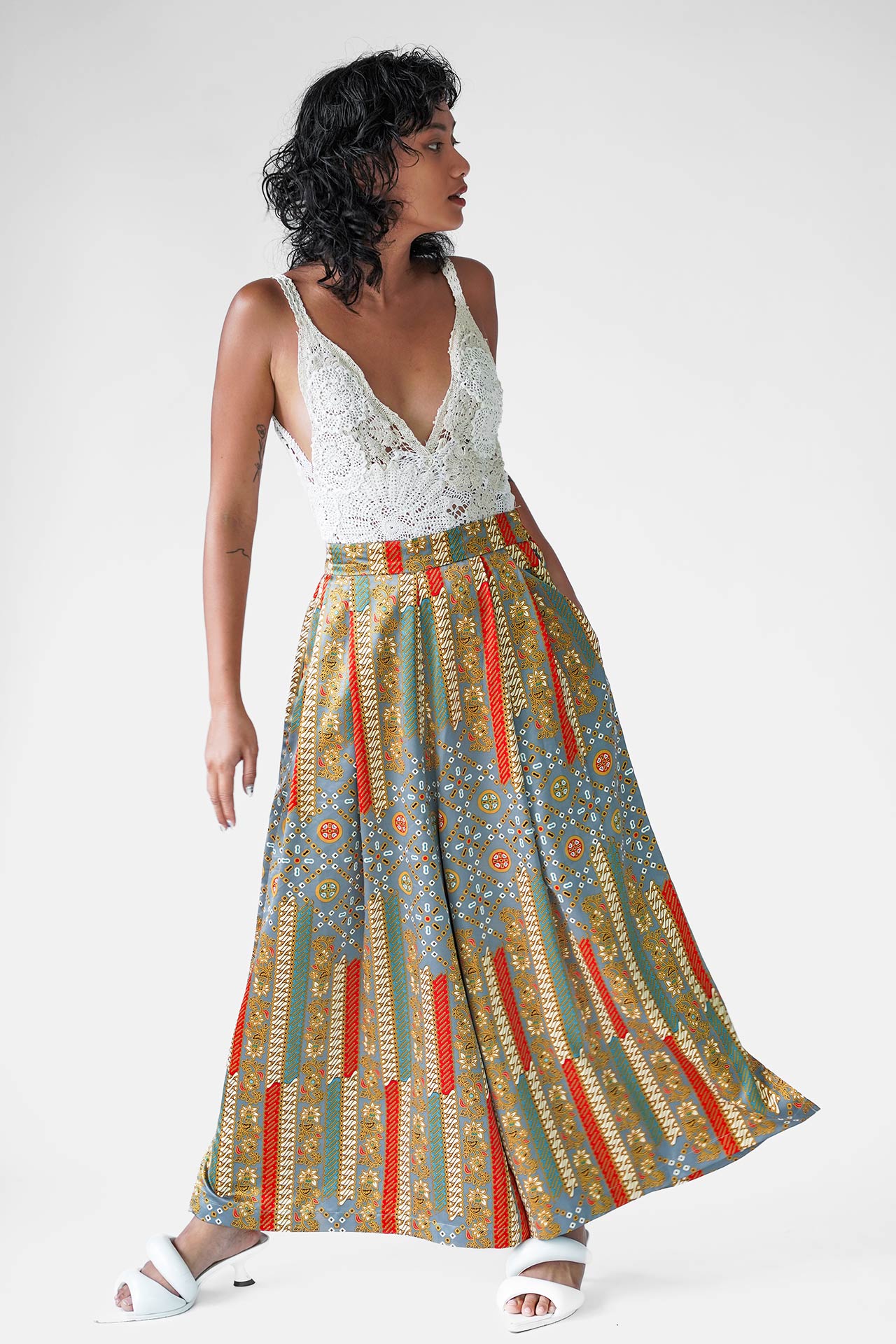 Rafiki Party Pants are flowy bottoms that add fun and flare to any ensemble. These extra wide legged palazzo pants had a waistband that is flat in front and garterized in back. Party pants are your perfect flexible and versatile pants for every occasion, be it a beach trip, a wedding, and of course, a dance party.