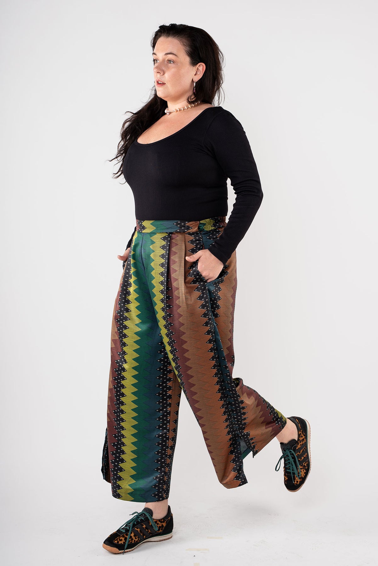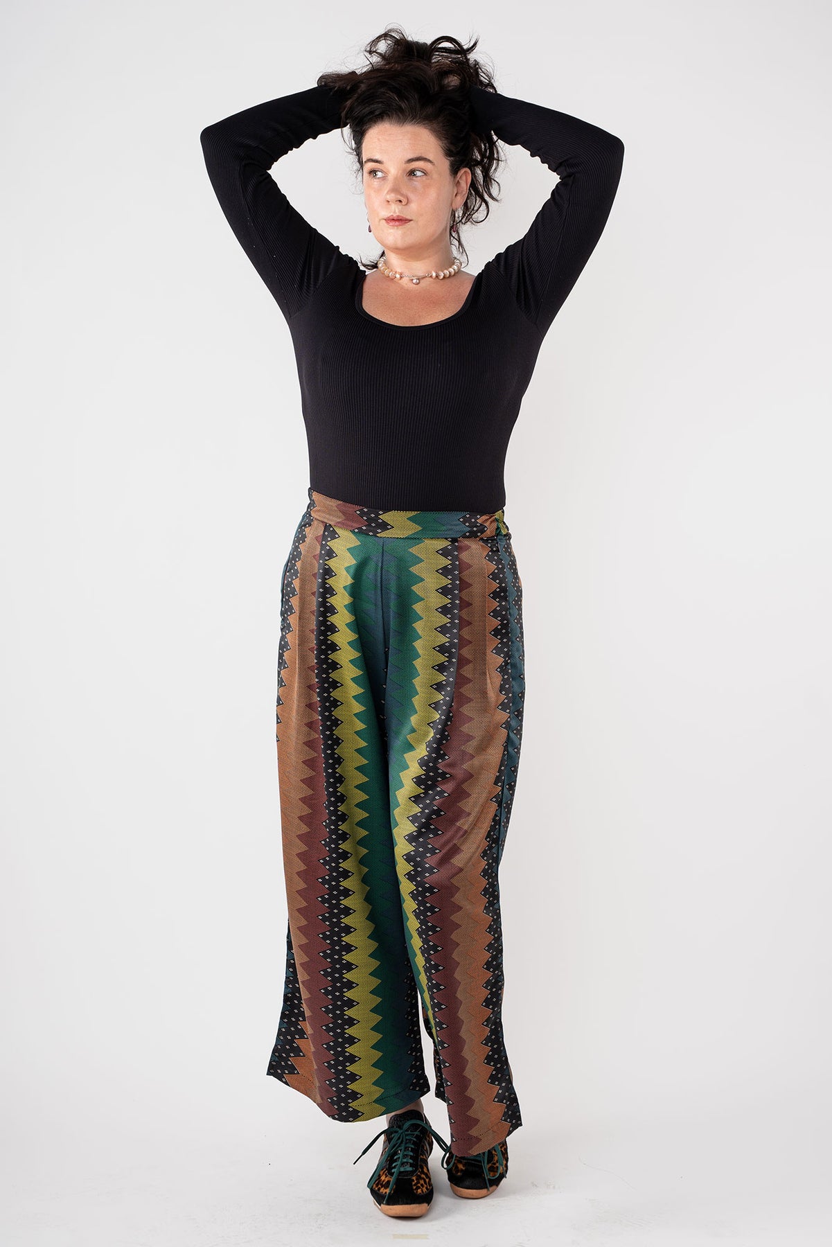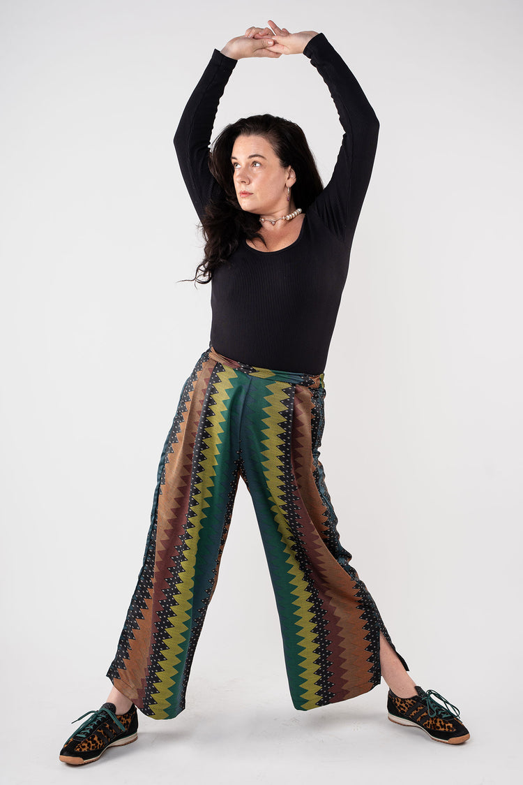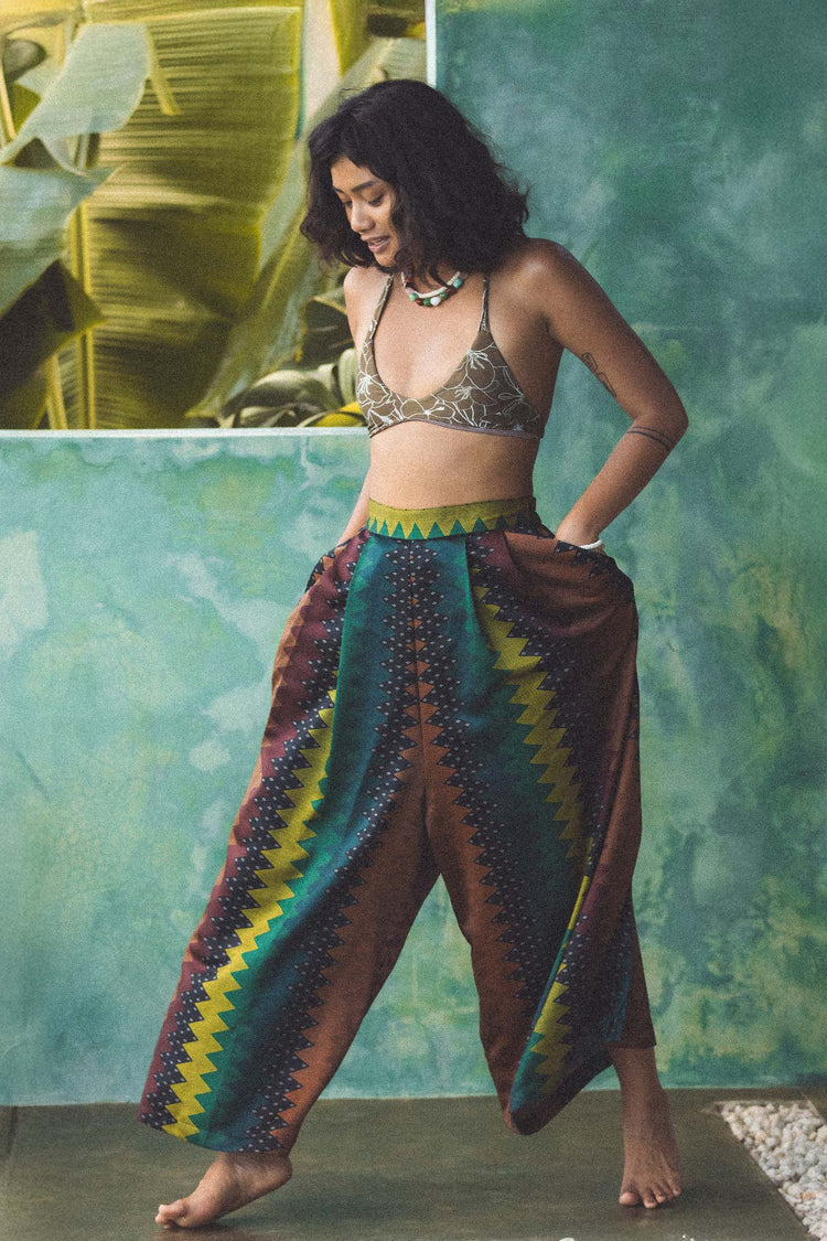 Rafiki Party Pants made for fun, not hassle. Each pair is made with a silk-polyester blend, making them easy to wash by hand and are wrinkle resistant so they travel well.