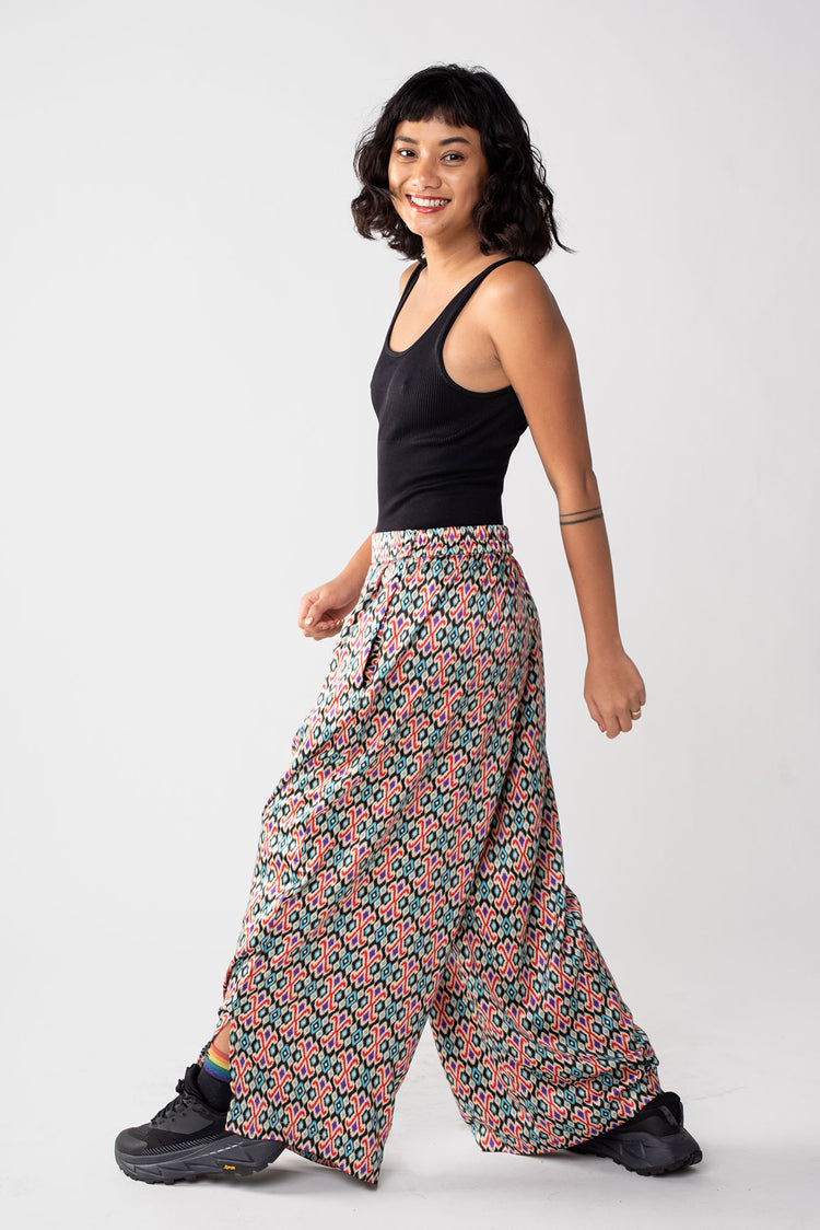Rafiki Party Pants made for fun, not hassle. Each pair is made with a silk-polyester blend, making them easy to wash by hand and are wrinkle resistant so they travel well.